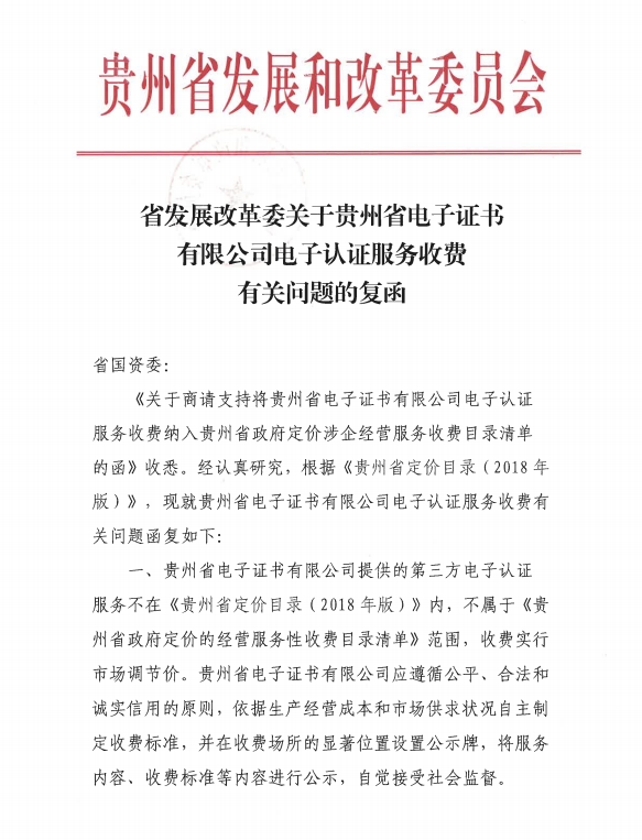 2.《關(guān)于貴州省電子證書有限公司電子認(rèn)證服務(wù)費(fèi)有關(guān)問題的復(fù)函》