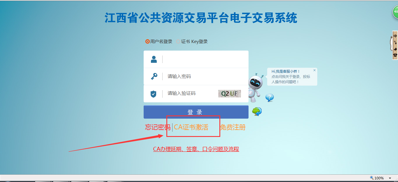 1)您可以登錄交易主體登錄頁面,點(diǎn)擊“CA證書激活”按鈕;