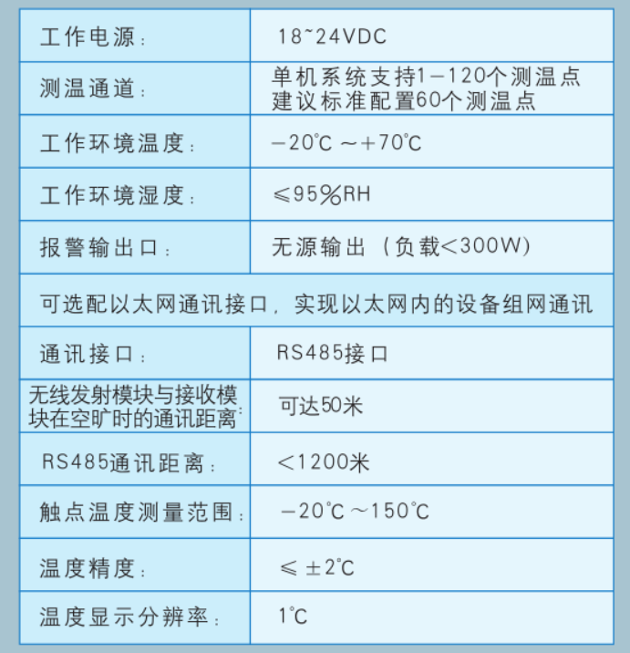 1) 多路無(wú)線(xiàn)測(cè)量溫度實(shí)時(shí)數(shù)據(jù)顯示,建議單機(jī)標(biāo)準(zhǔn)配置60個(gè)無(wú)線(xiàn)溫度傳感器。