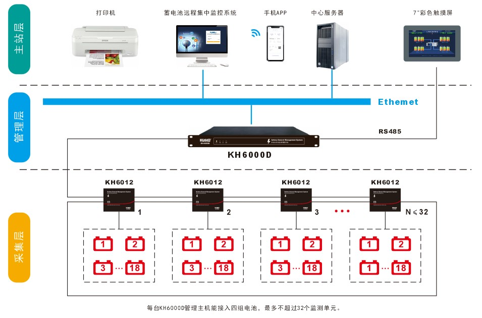 其工作方式是通過(guò)在線監(jiān)測(cè)每一節(jié)電池的電壓、電流、內(nèi)阻、容量及環(huán)境溫度的數(shù)值情況來(lái)判斷蓄電池運(yùn)行過(guò)程中各個(gè)參數(shù)是否處于正常,當(dāng)蓄電池組一致性變差時(shí), KH6000D蓄電池在線監(jiān)測(cè)管理系統(tǒng)會(huì)自動(dòng)啟動(dòng)在線均衡功能對(duì)電池進(jìn)行均衡調(diào)節(jié),并能對(duì)性能較差的電池進(jìn)行在線活化,其能有效的防止蓄電池組過(guò)充電或欠充電,使蓄電池組性能一致的運(yùn)行在最佳狀態(tài),提高了蓄電池組安全運(yùn)行水平,延長(zhǎng)蓄電池組使用壽命,減少了維護(hù)人員對(duì)電源系統(tǒng)的維護(hù)時(shí)間與維護(hù)成本。